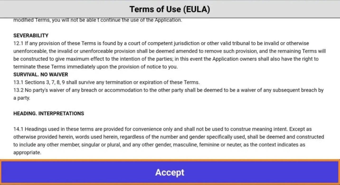 After you will be shown the Terms of Use which you need to Accept in order to proceed.